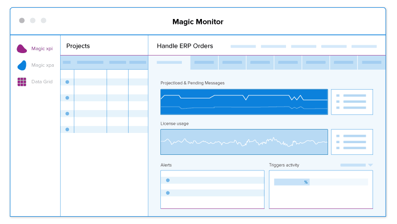 Our built-in In-Memory Data Grid (IMDG) architecture provides automatic backup and distribution of processes, ensuring optimal performance at all times. So, forget about downtime and interruptions, and be confident and secure when you automate your integrations with Magic xpi.