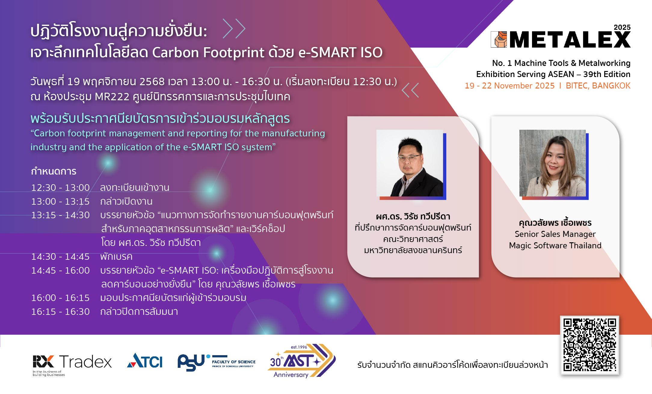 METALEX 2025 - ปฏิวัติโรงงานสู่ความยั่งยืน: เจาะลึกเทคโนโลยี Carbon Footprint ด้วย e-SMART ISO