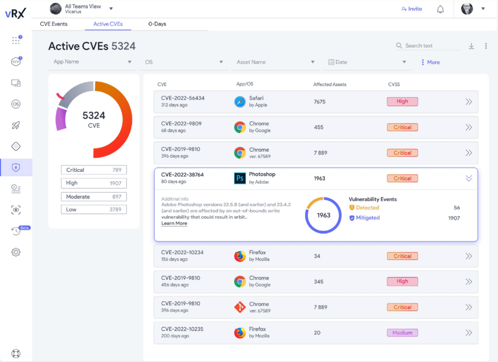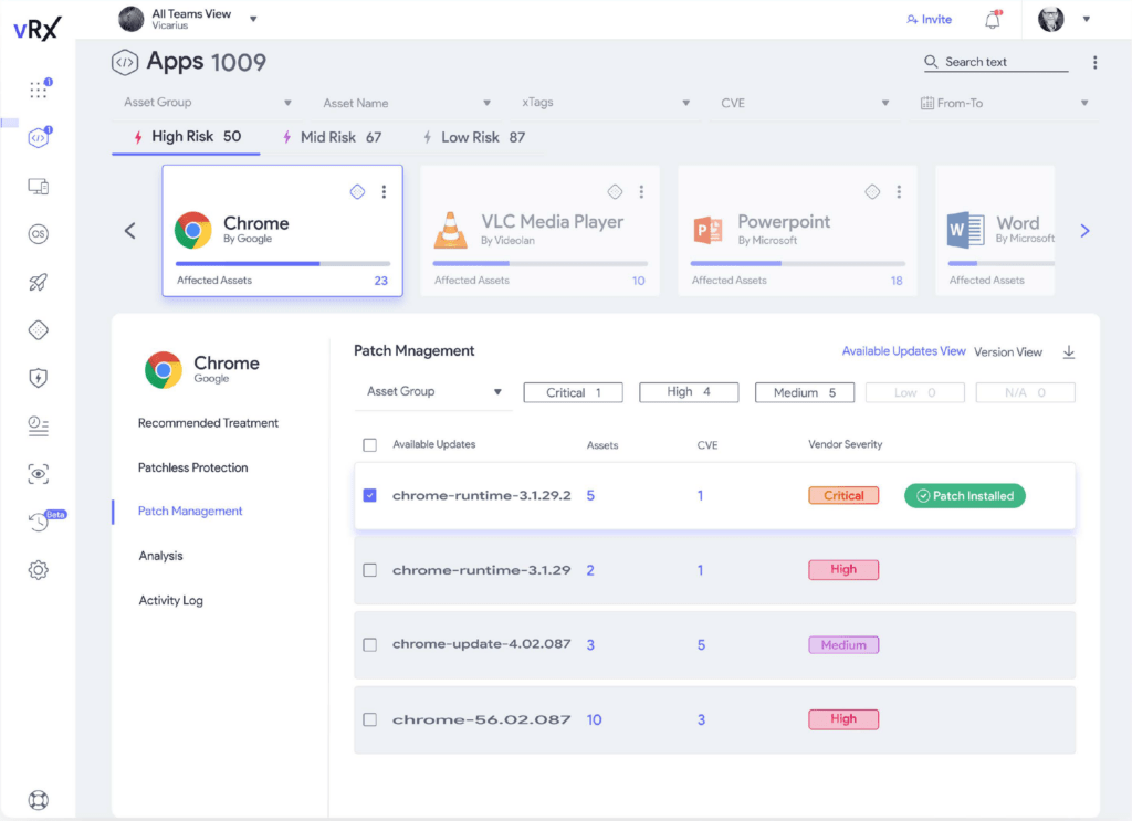 vRx ranks the risk and severity of each app and asset in your organization based on their level of threat and exploitation.